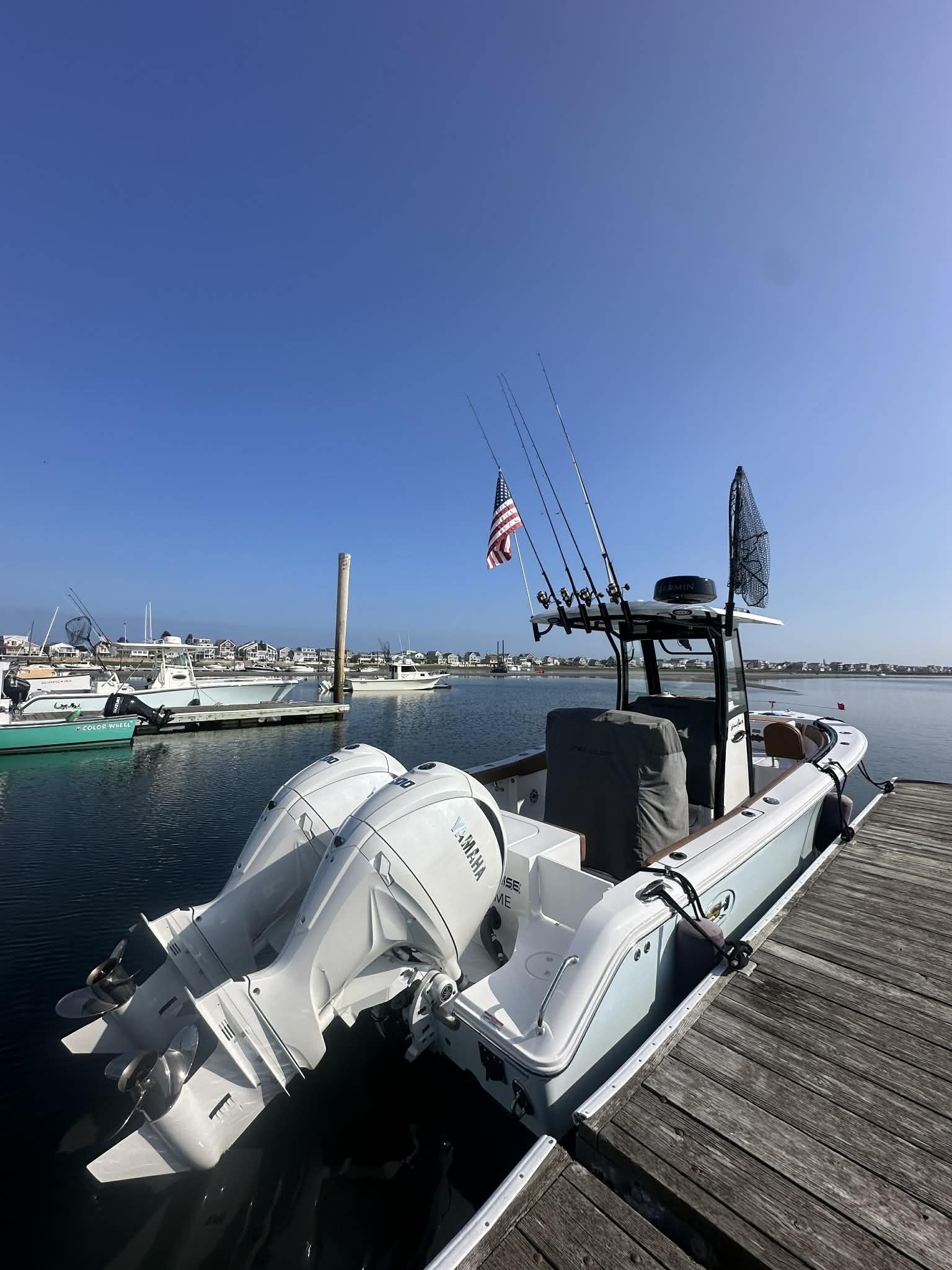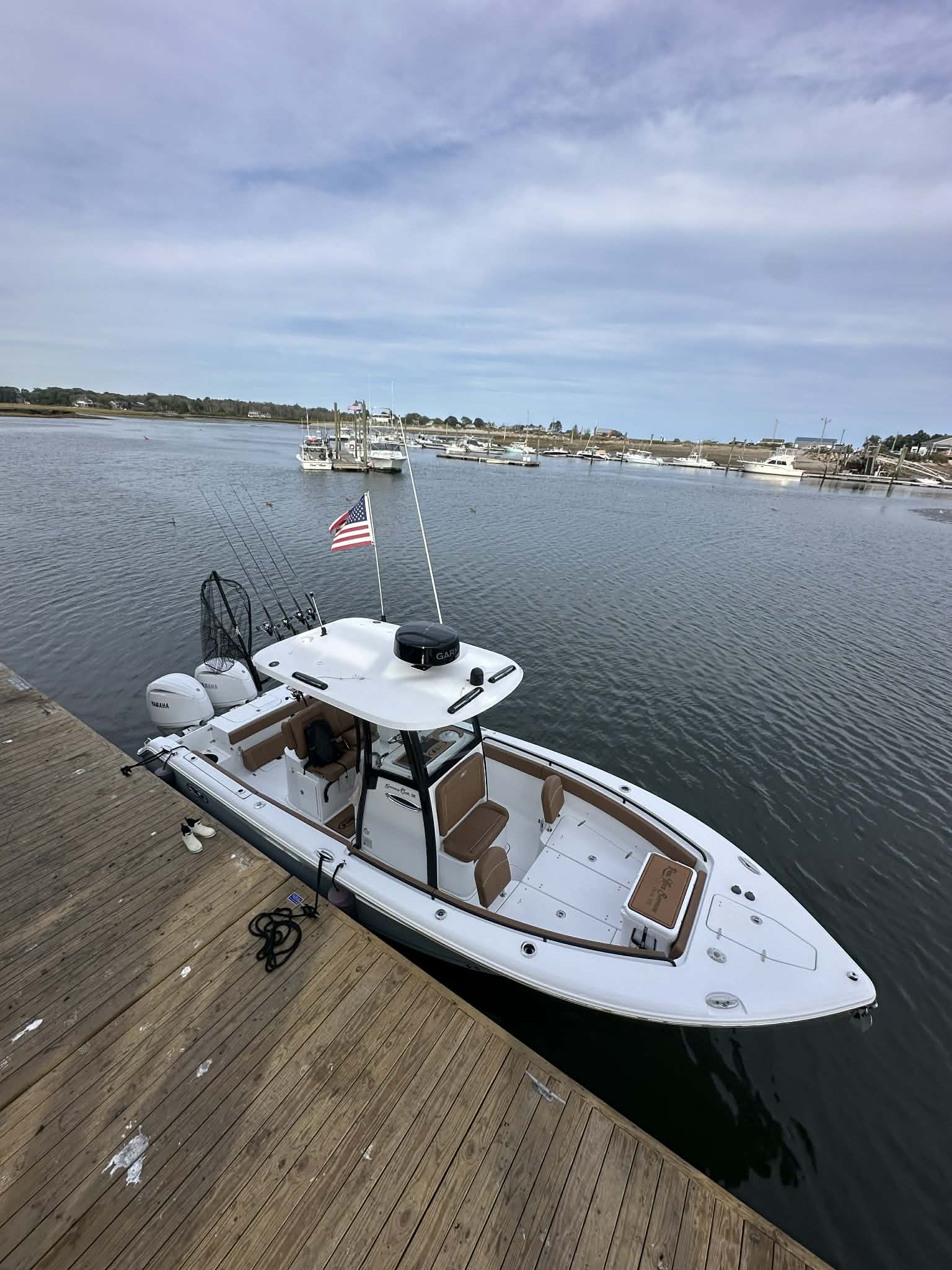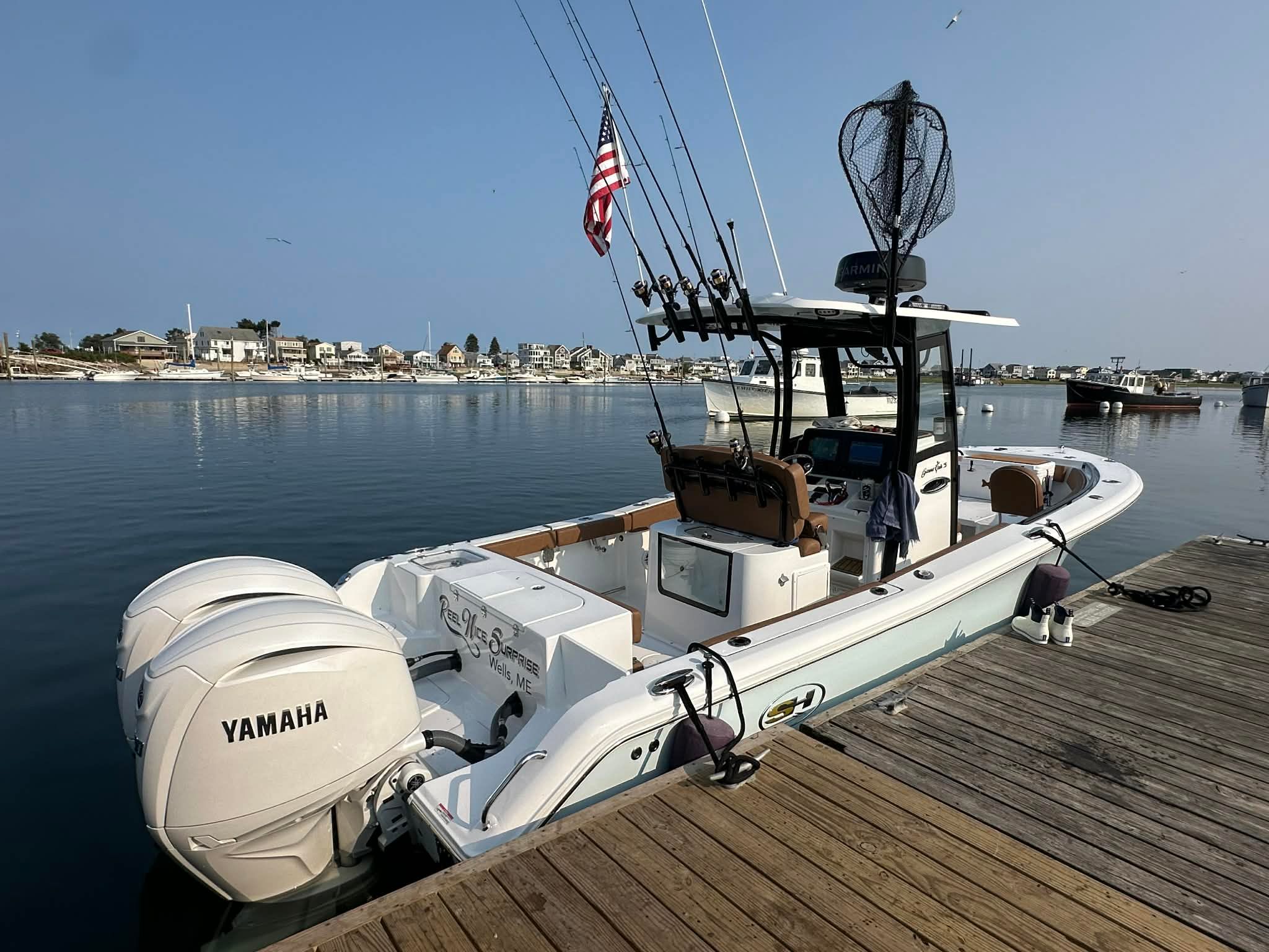 Captain Jeff operates a state-of-the-art 26-foot Seahunt Game Fish 25 Center Console, built in 2025, and powered by twin 200hp Yamaha engines. This modern boat is designed for both performance and comfort, providing anglers with a smooth, stable ride on Maine’s diverse waters. With ample space for four to six passengers, the Seahunt Game Fish offers plenty of room for you and your group to fish comfortably. Equipped with the latest fishing technology and safety features, this boat ensures that every Maine fishing charter is a safe, enjoyable, and successful adventure on the water.